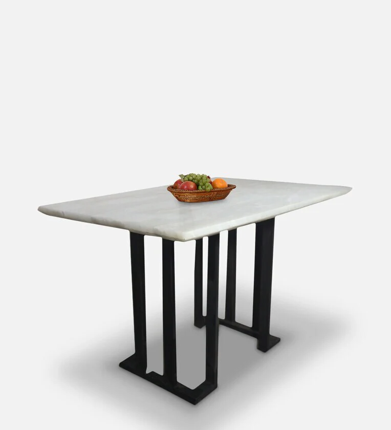 Imagine the heart of your home transformed into a gallery of modern art, where conversation flows as freely as wine around a sculptural masterpiece. This isn't just a dining table, it's an invitation to gather, to connect, to experience the extraordinary woven into everyday moments. A gleaming expanse of white composite marble stretches before you, veins dancing like whispers of nature's artistry. Its cool smoothness begs to be touched, to feel the luxurious weight of fine craftsmanship beneath your fingertips. But the true magic lies in the base, a mesmerising dance of black metal sculpted into two shaped supports that converge in a captivating embrace. This isn't just a place to eat, it's a stage for laughter, for shared stories, for intimate whispers under the warm glow of candlelight. Imagine the faces around the table, reflected in the polished marble like stars in a moonlit pond. Each dish becomes a work of art, each conversation a masterpiece, enhanced by the table's understated brilliance.