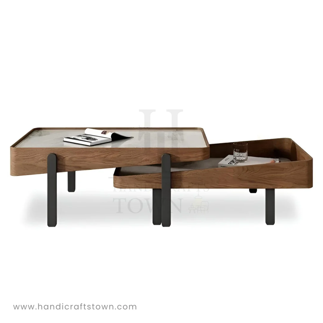 The Driftwood Duo Nesting Coffee Table set brings organic texture and modern function to your living space. Featuring a unique combination of a warm natural wood base and a cool, sophisticated marble tabletop, this two-piece set is designed for versatility. The nested tables allow you to effortlessly expand your surface area for entertaining or tuck them away to maximize space. Supported by sleek black metal legs, the Driftwood Duo is the perfect statement centerpiece for contemporary interiors.