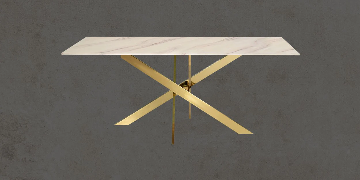 A minimal yet elegant dining table can be a perfect fit for a family meal in your home. Given its fabulous neutral tones and calm appearance, the table can seamlessly blend with any type of interiors. The top is made with composite marble and the classy glossy legs add up to its uniqueness, offering your dining space an effortless chic and minimal appearance. Glam it up with a classy centre piece of your choice to make the space more inviting. This isn't just a purchase, it's an investment in countless evenings filled with laughter, shared meals, and the warmth of loved ones gathered close. Imagine family game nights with the clatter of dice on steel, romantic dinners bathed in candlelight, and spontaneous feasts that spill into the wee hours. Your metal dining table will be the silent anchor, holding countless memories and witnessing a lifetime of laughter.